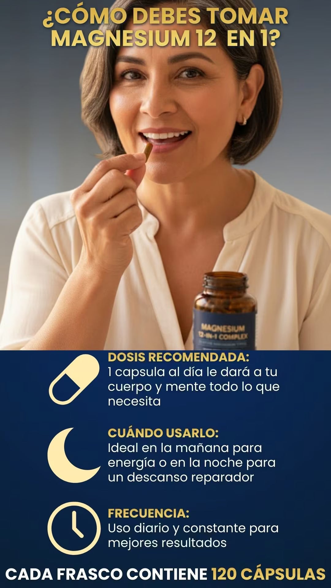 Descubre cómo Magnesio 12 en 1 ayuda a equilibrar tu cuerpo, mejorar tu descanso, controlar el estrés y apoyar la pérdida de peso natural desde la primera semana.