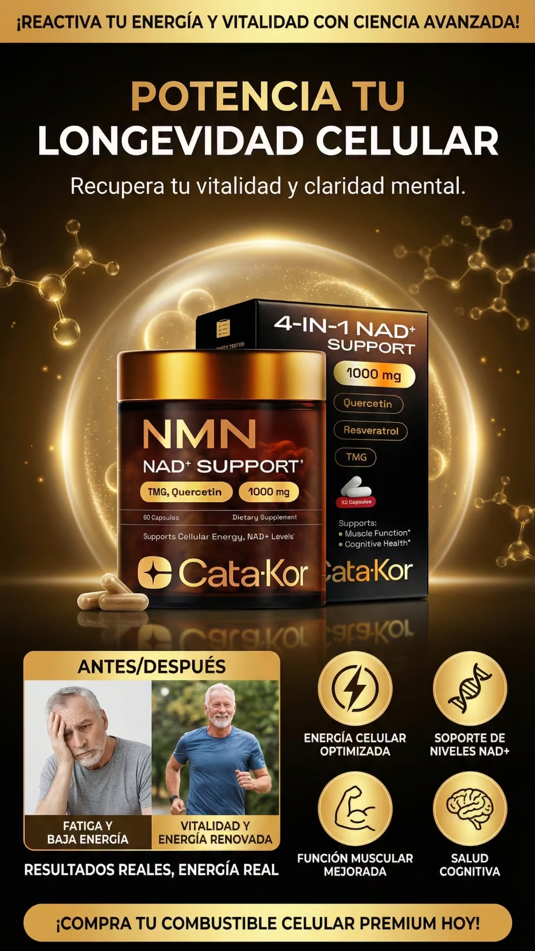 Descubre cómo NMN Complex reactiva tu energía celular, combate el envejecimiento y potencia tu enfoque mental desde la primera semana.