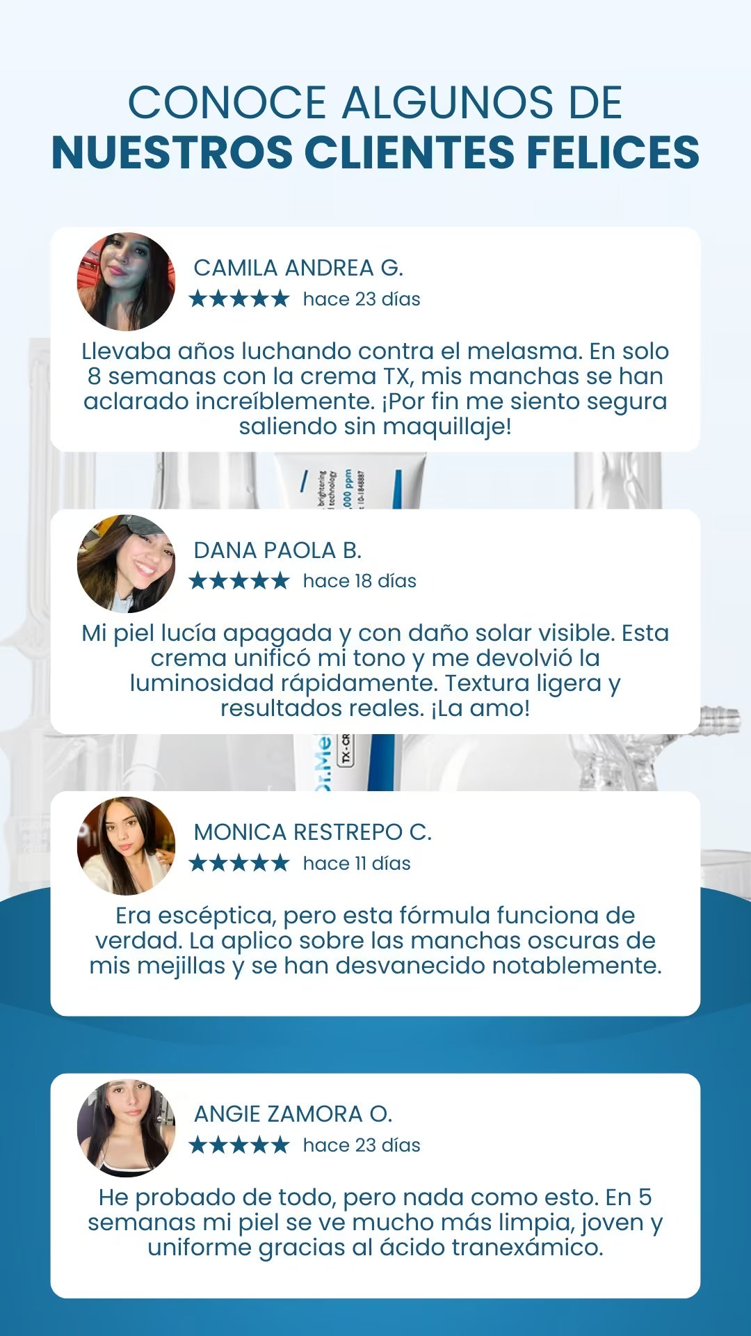 Definitivamente. El Ácido Tranexámico es el ingrediente estrella recomendado por dermatólogos específicamente para combatir el melasma resistente que otros productos no logran quitar.