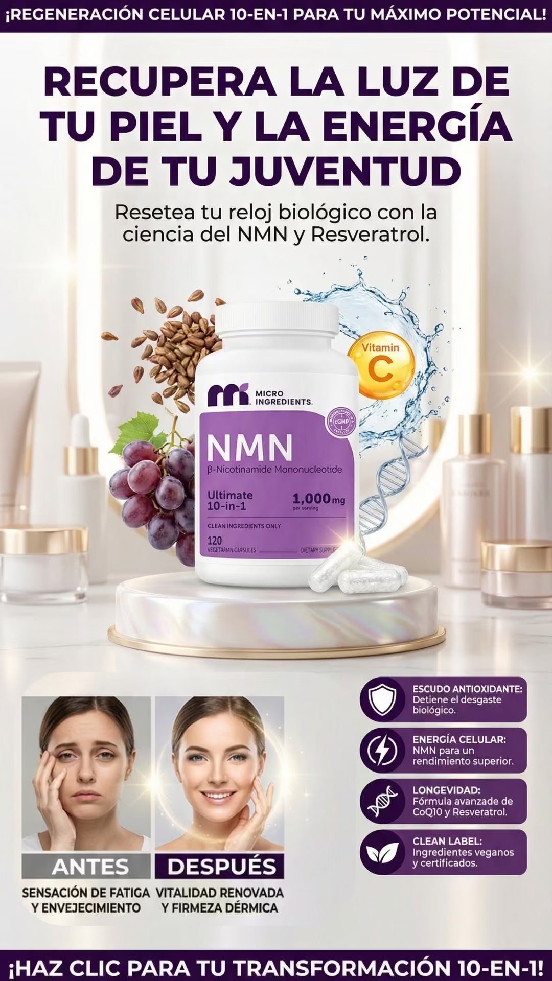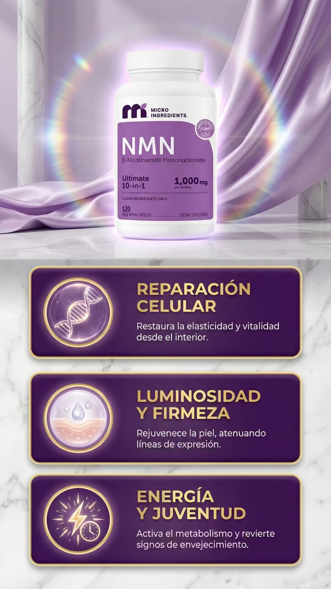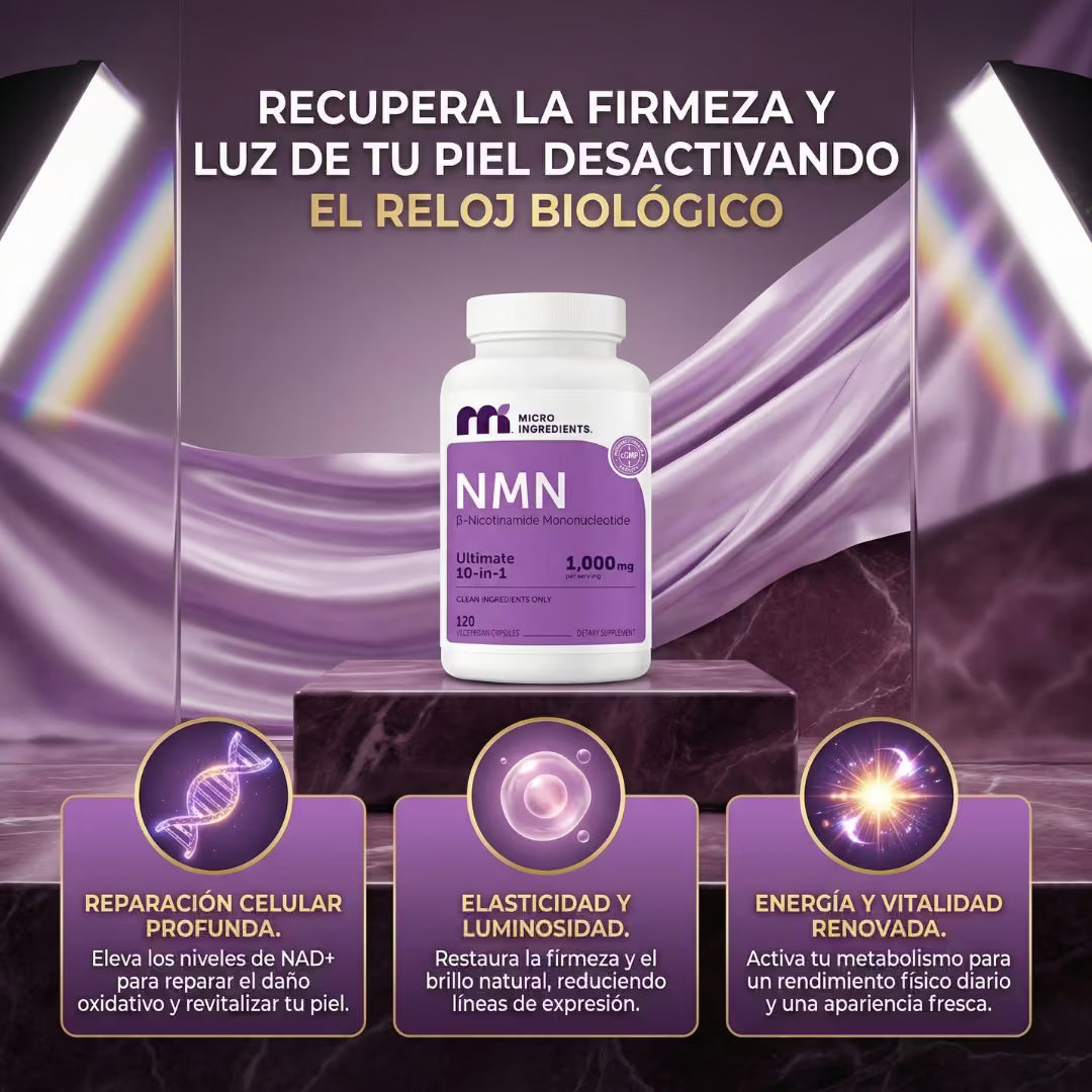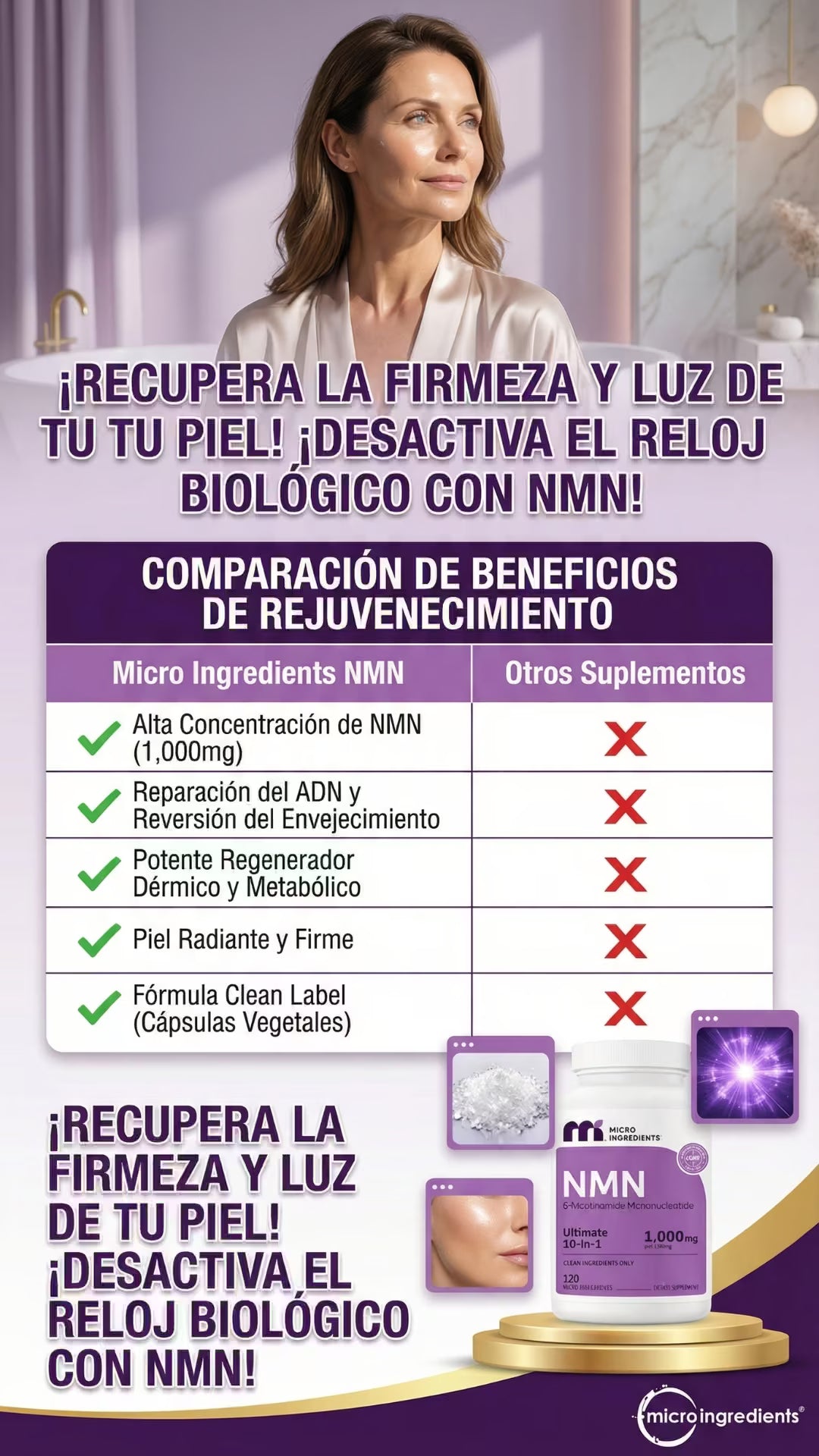 Descubre cómo NMN Microingredients, regenera tu firmeza dérmica, combate las líneas y potencia tu brillo natural desde la primera semana.