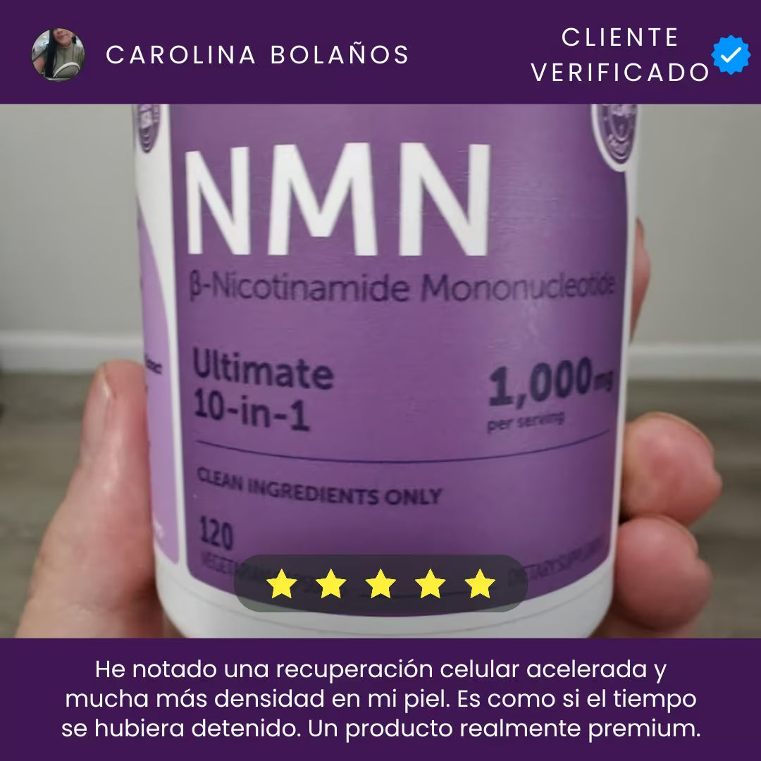 Esta potente fórmula 10-en-1 combina NMN y Resveratrol al 98% para regenerar el ADN celular, devolviendo la firmeza y luminosidad perdida. Con la potencia antioxidante de la Astaxantina, CoQ10 y Glutatión, este suplemento combate el estrés oxidativo, hidratando profundamente y suavizando líneas de expresión para un rejuvenecimiento dérmico total.